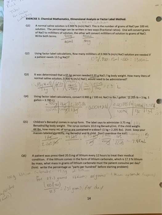 Solved Additional Dimensional Analysis (Factor Labeling) 15 ...
