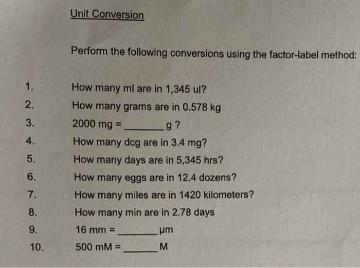 Solved Unit Conversion Perform the following conversions ...